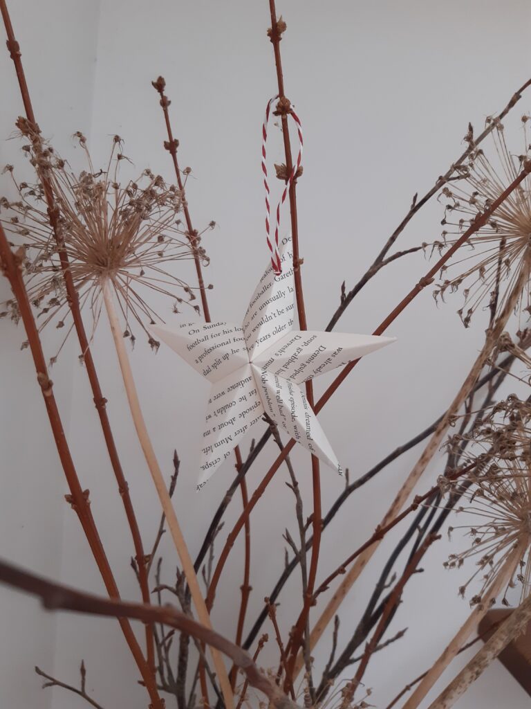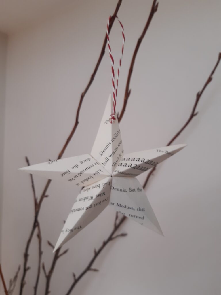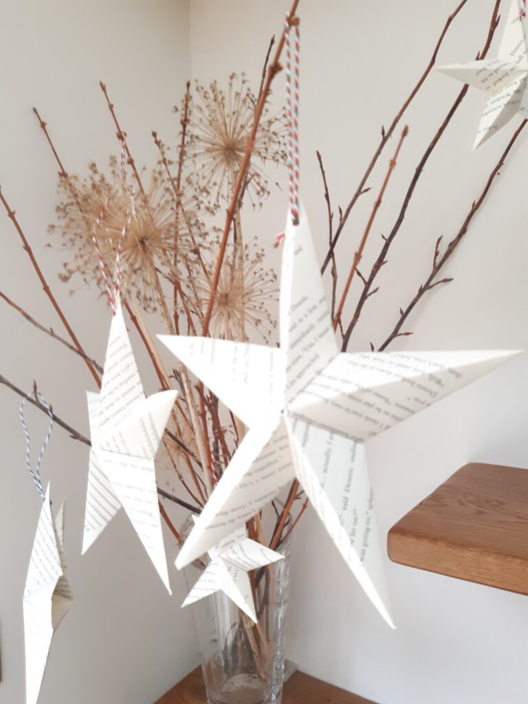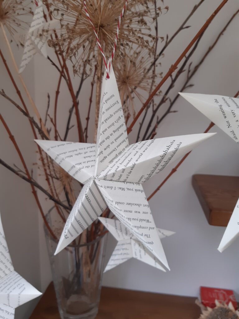 Old damaged books and magazines have been crafted into star decorations, whilst there are lucky dip boxes made from magazine pages and containing some book lovers sweet treats, great for children and big kids! We hope the boxes are taken home and reused as small gift boxes.